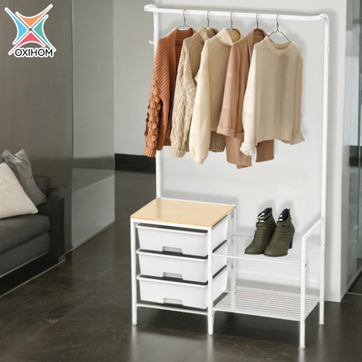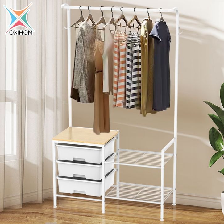 Oxihom Lemari Pakaian Gantungan Baju Full Drawer Pakaian Lemari Baju Gantung 3 Laci Susun