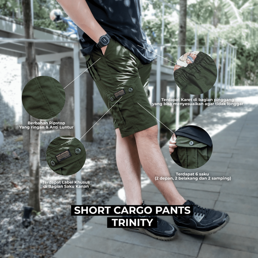 BAPIN Celana Cargo Pendek Pria Trinity Pinggang Karet - Short Cargo Pants