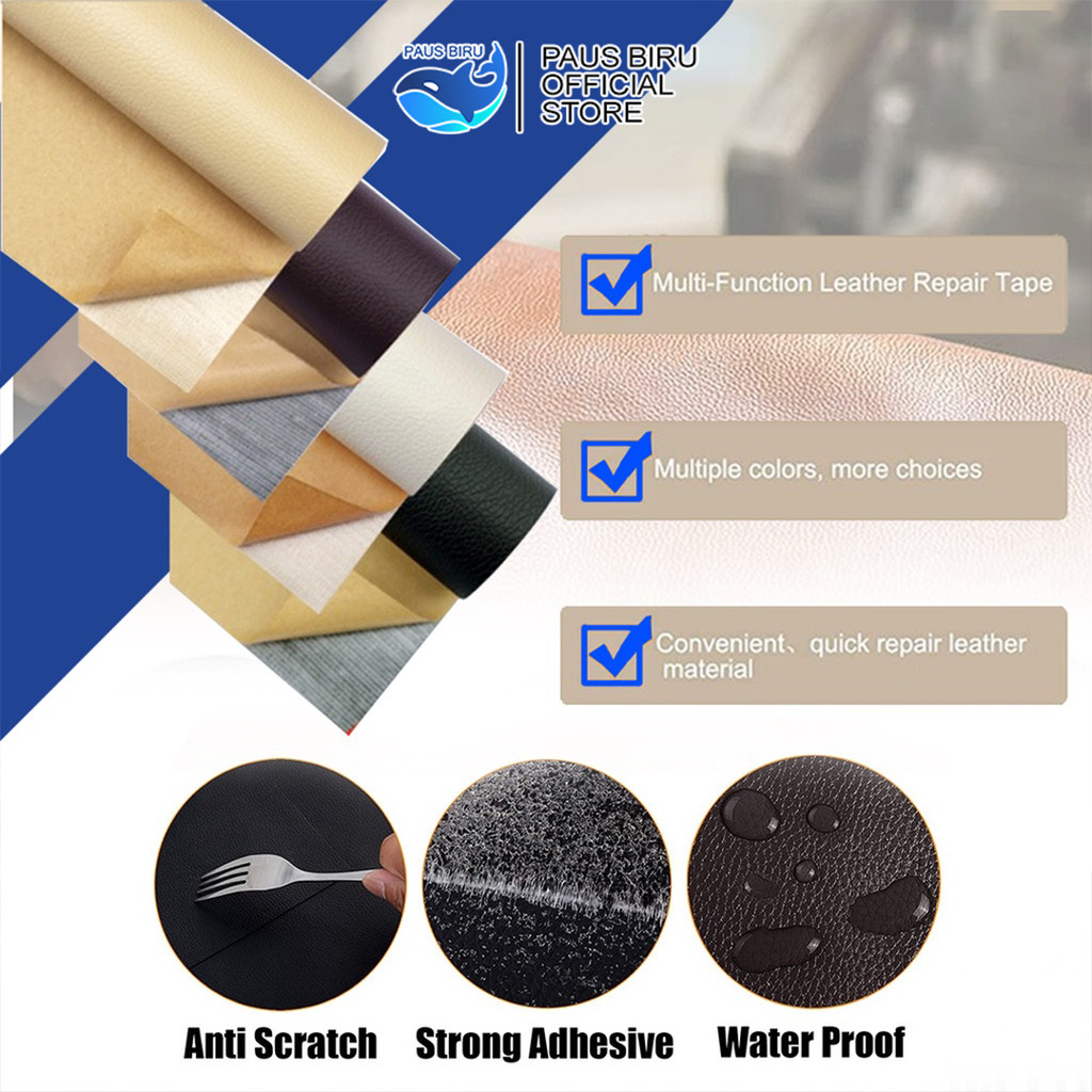 PAUS BIRU - STICKER KULIT PU | LEATHER STICKER COVER PERBAIKAN KULIT SOFA PENAMBAL KURSI DAN TAS 10 CM X 137CM