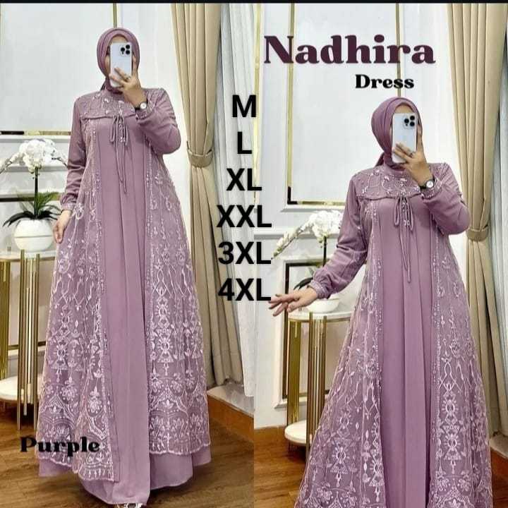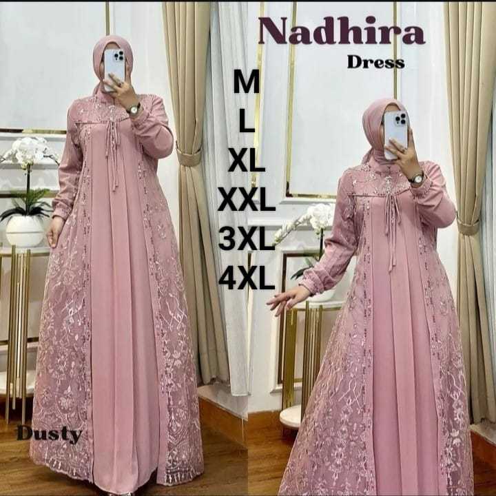 Gamis Kondangan Brukat Terbaru 2024 // Nadhira Dress Ceruty Babydoll Mix Brukat Premium // Baju Pesta Wanita Dewasa