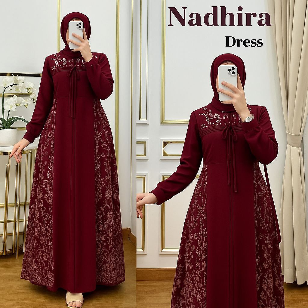 Nadhira Dress Brukat Bahan Ceruty Babydol Gamis Lebaran l Model Gamis Terbaru Dress Kondangan ELF l BL