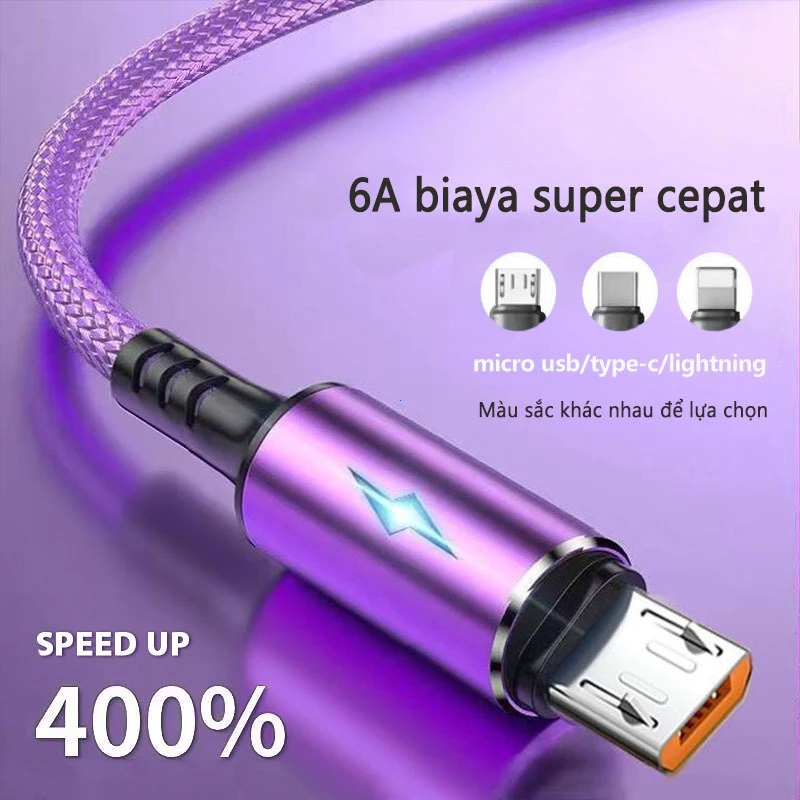 [Mall] PixEILink Kabel Data 6A 120cm/2M/3M Type C / Micro Usb Kabel Data Menenun Lampu pita Original Fast Charging