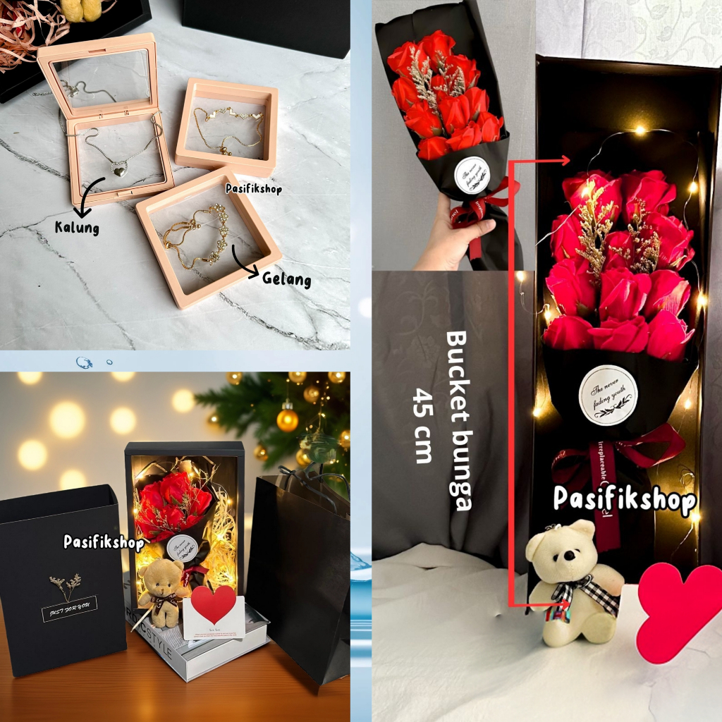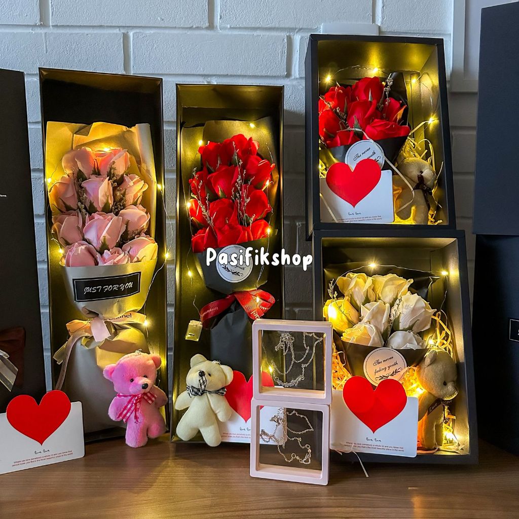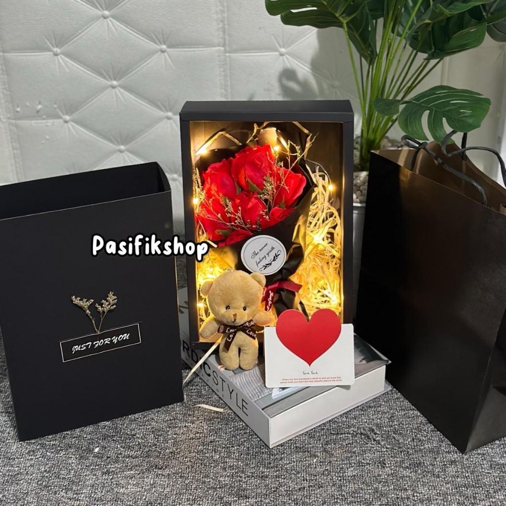 HAMPERS KADO ESTETIK - BONEKA, BUNGA MAWAR, DAN BOX ELEGAN UNTUK VALENTINE