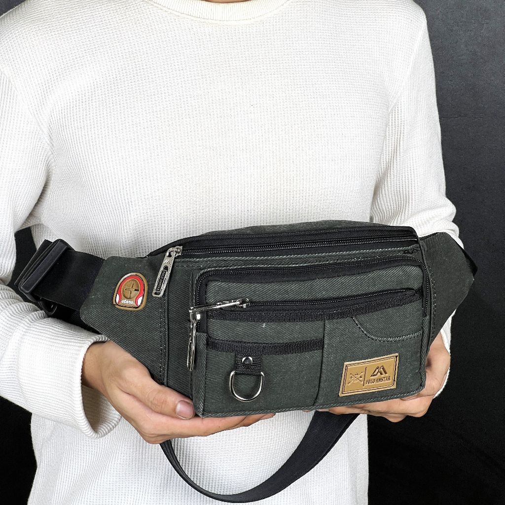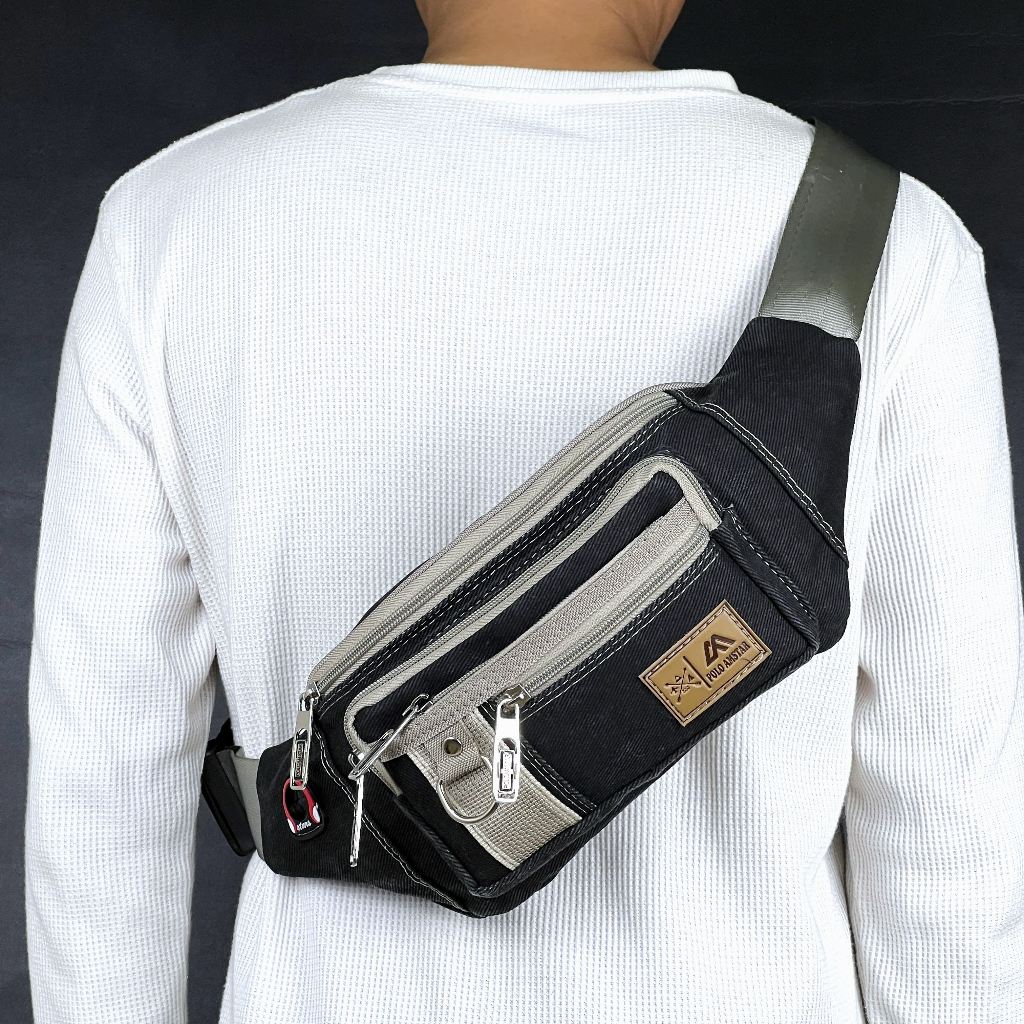 Tas Selempang Pria POLO AMSTAR Canvas Waistbag Slingbag Kanvas Tas Pinggang Cowok Casual Multifungsi