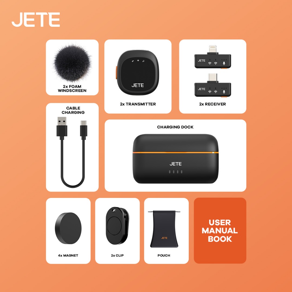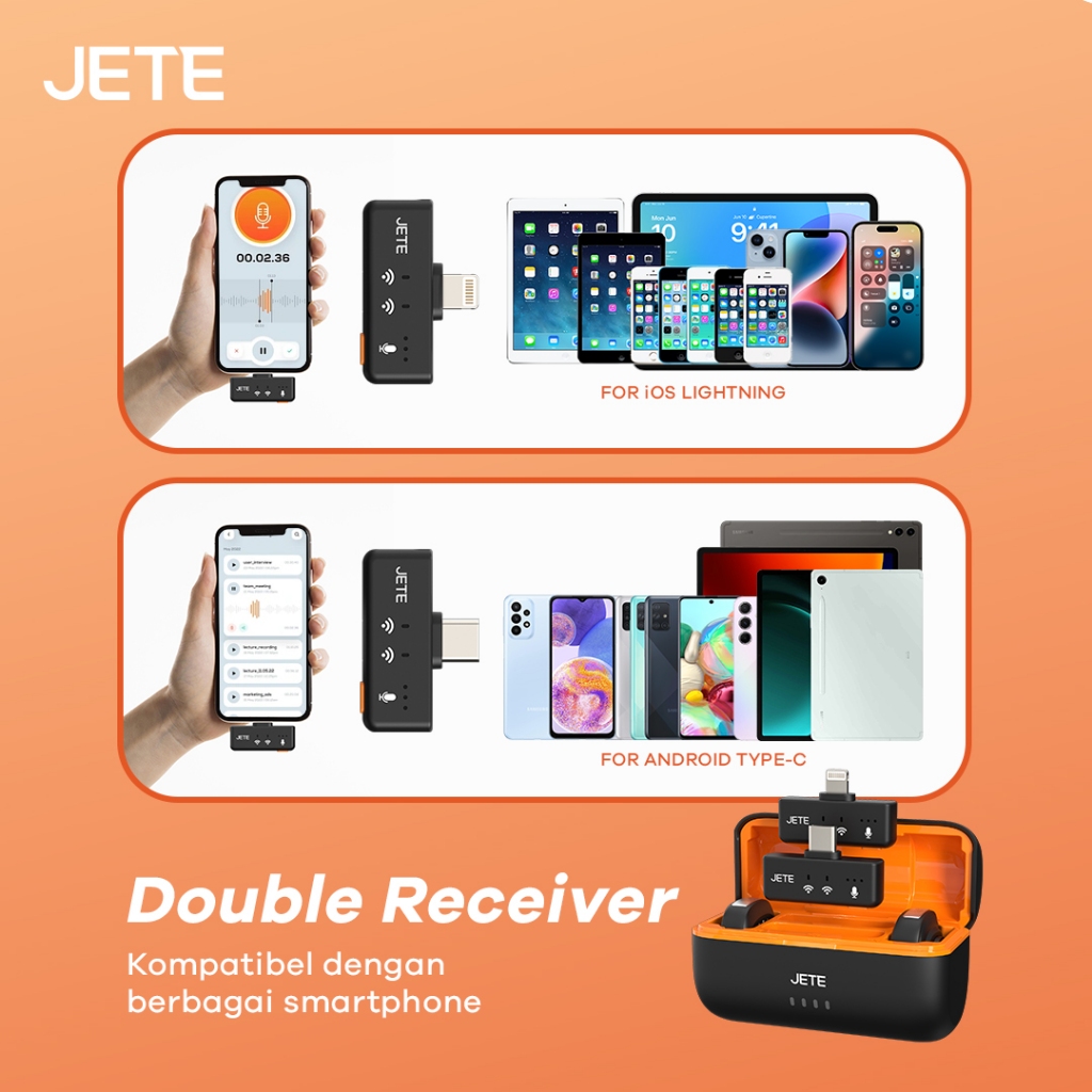 MIC WIRELESS JETE MP2 DOUBLE RECEIVER 6 JAM DOCK CHARGER TIPE C & LIGHTNING ORIGINAL OFFICIAL STORE