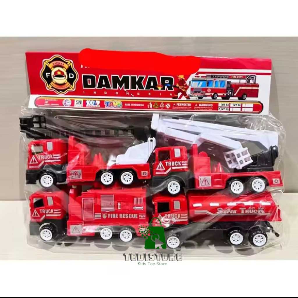 PROMO Mainan Anak Mobil Kontruksi isi 4 /Truk Pemadam / Truk Kebersihan