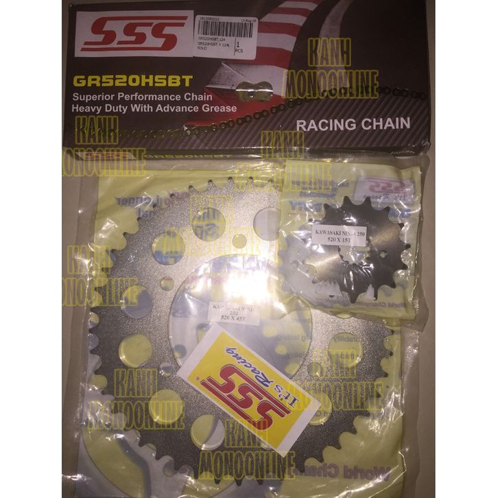 Gear Set SSS NINJA 250 Tipe 520 Depan 13T-16T + Belakang 43T-47T + Rantai HSBT gld 120L