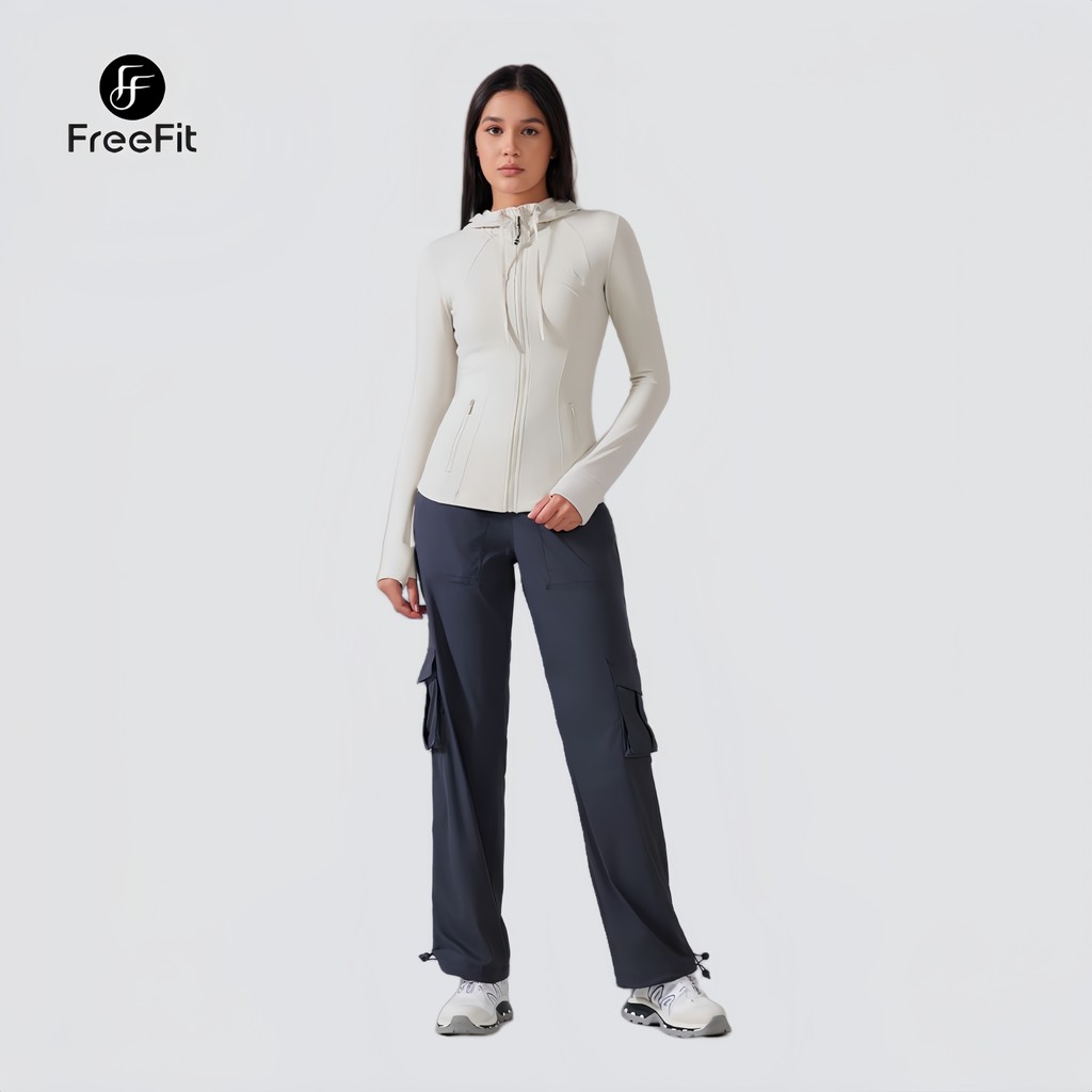 FreeFit Flow Jaket Hooded Olahraga Wanita Outdoor Anti UV Gym Pilates Yoga Jaket Gunung Lari Jogging