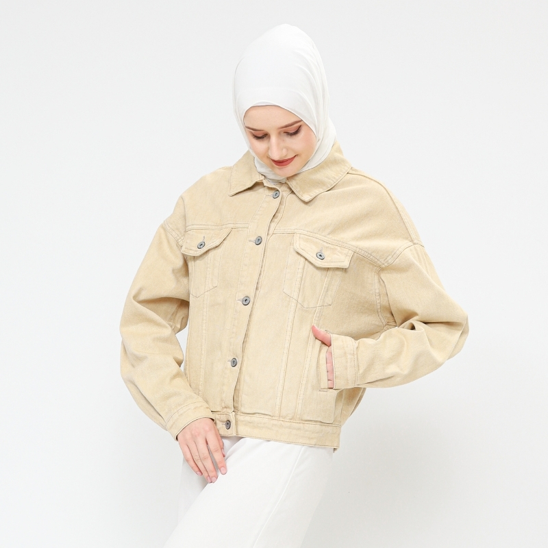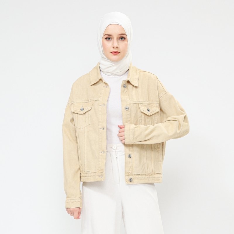 Myself Jaket Jeans Wanita Oversize Warna Khaki Lyra