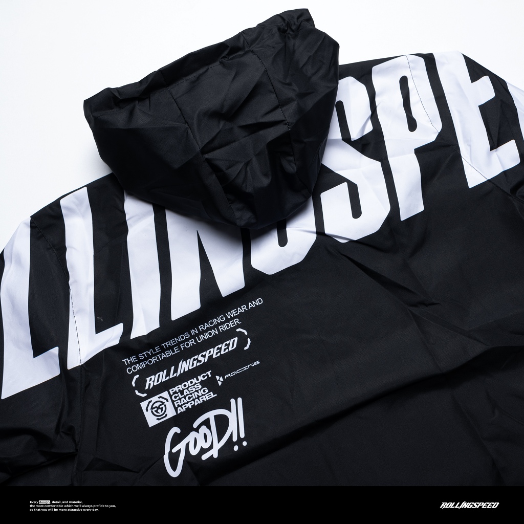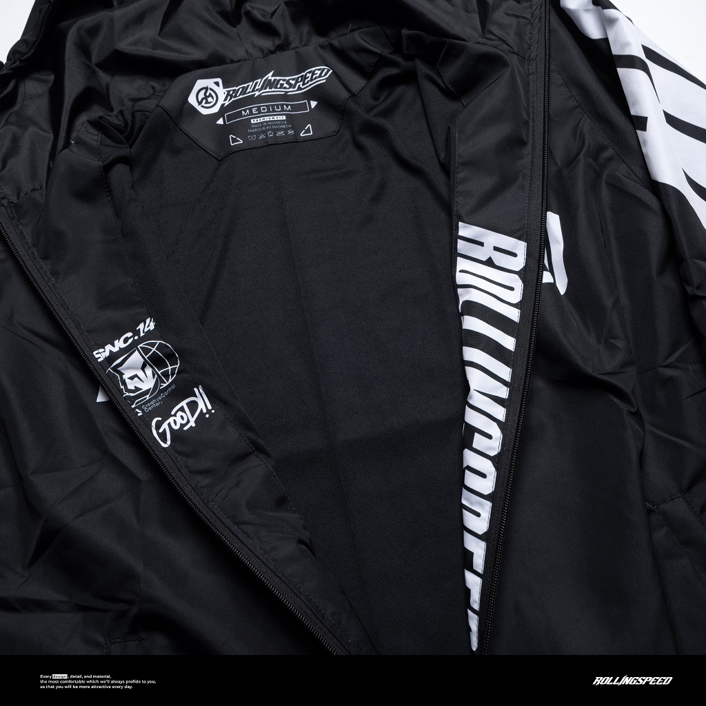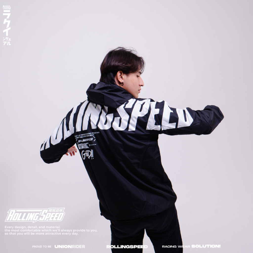 Rollingspeed Enivo Windbreaker Jacket Black - Jaket Motor Parasut Hitam