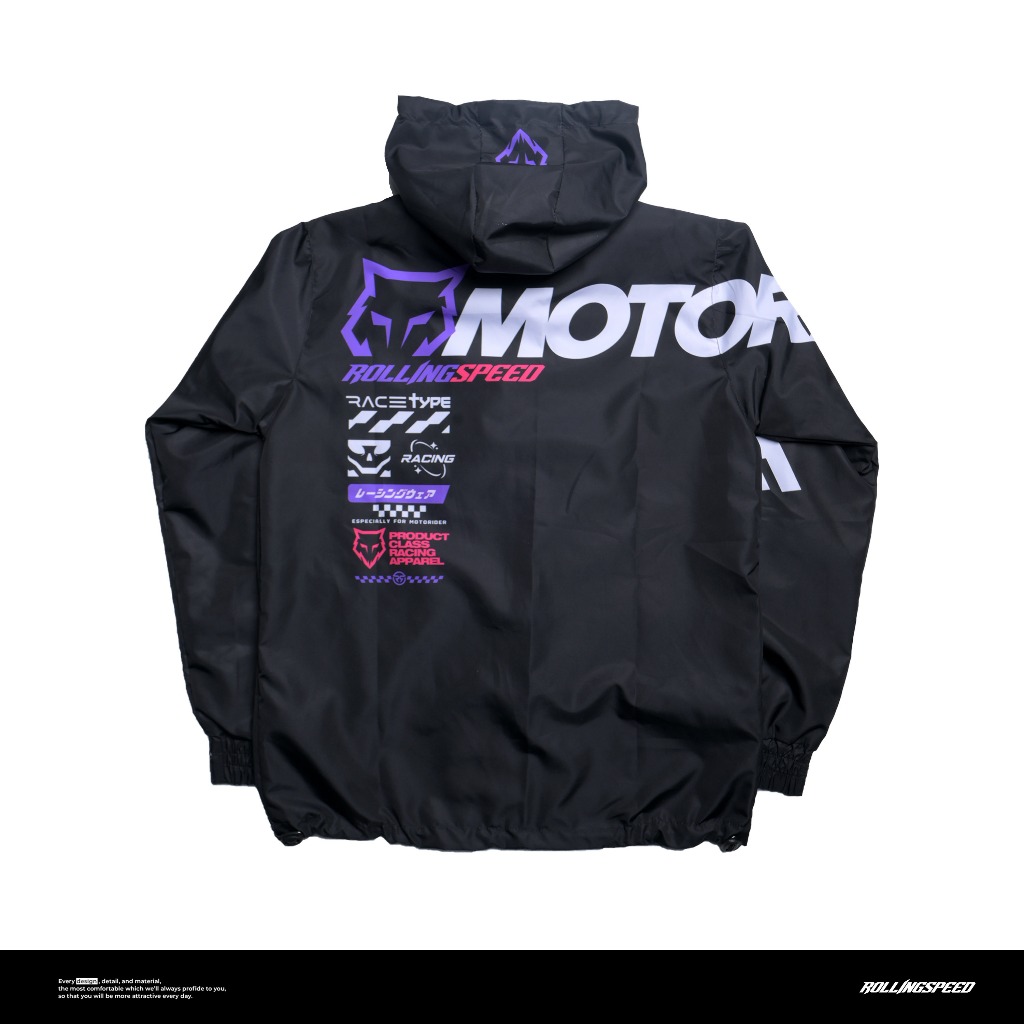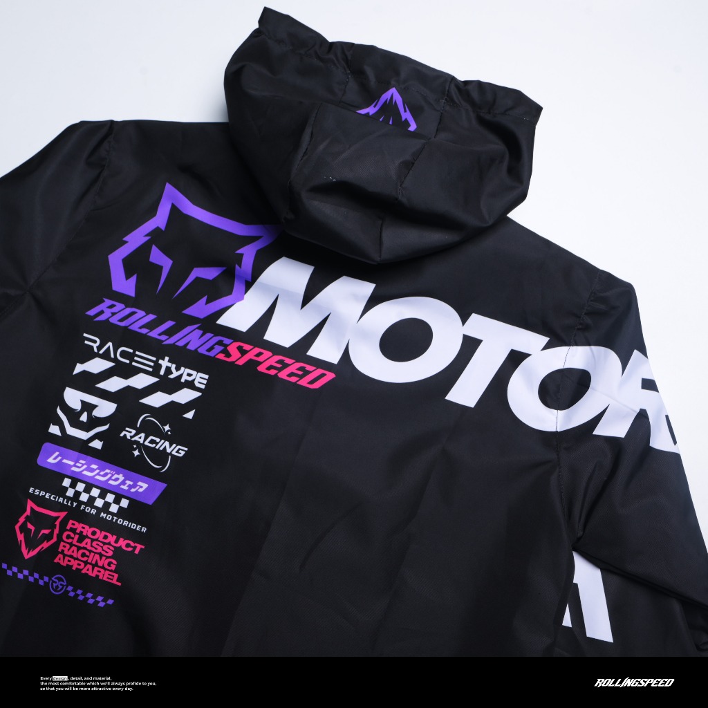 Rollingspeed Volver Windbreaker Jacket Black - Jaket Motor Parasut Hitam