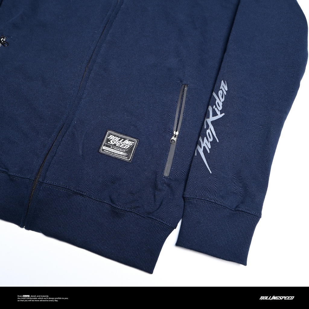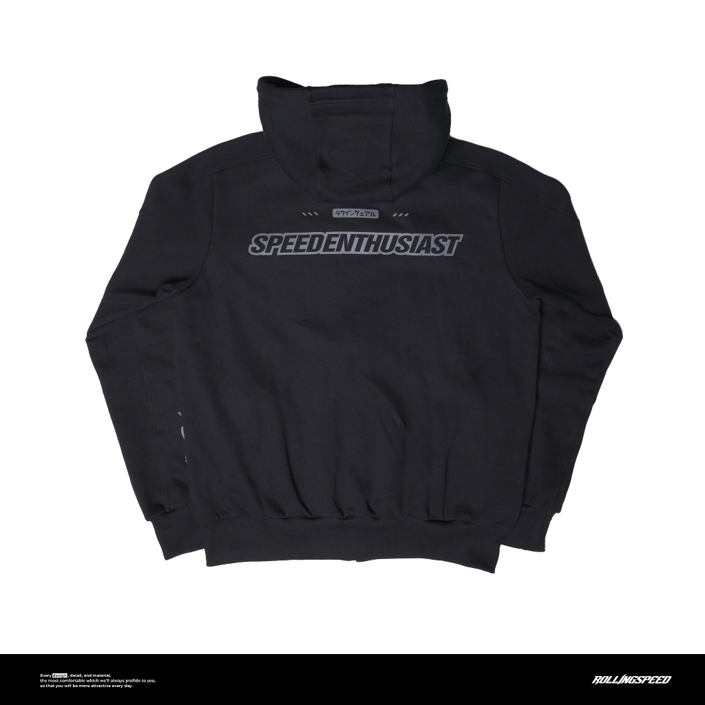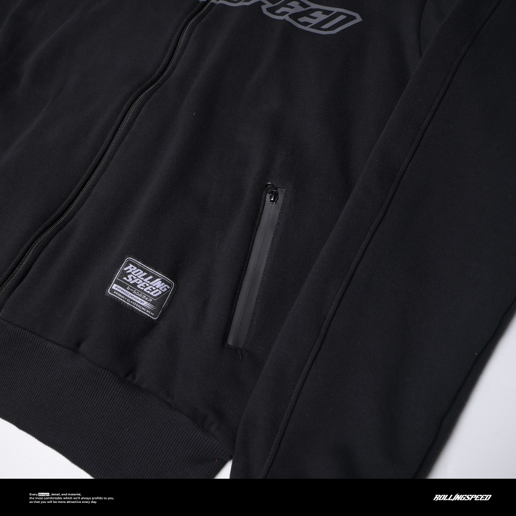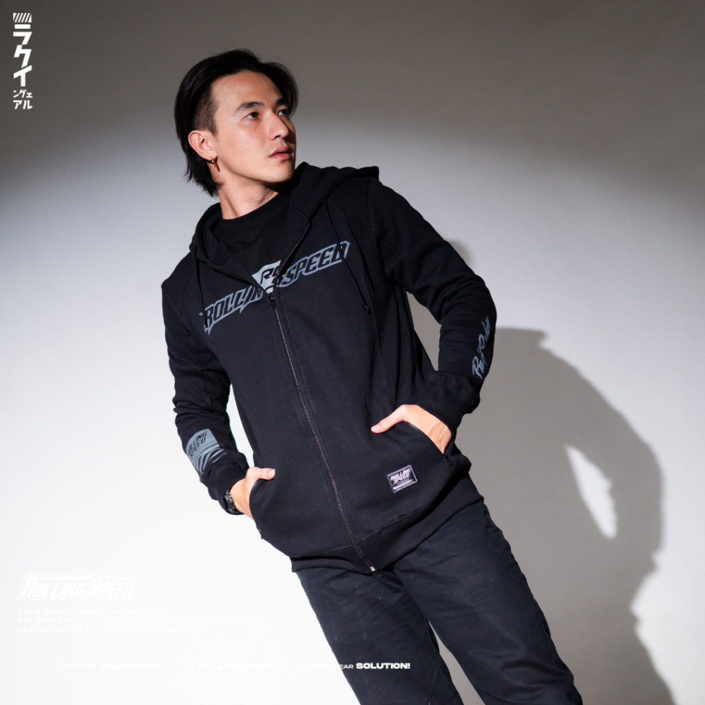 Rollingspeed - Jacket Sweater Hoodie Zipper Rodney Black - Jaket Tangan Panjang Hitam Fleece Sablon