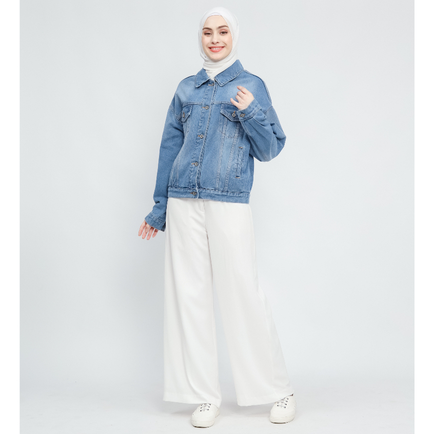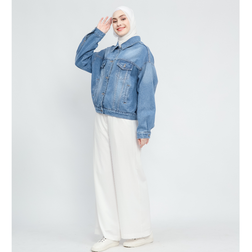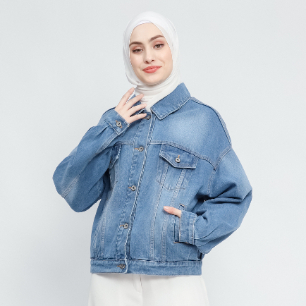 Myself Jaket Jeans Wanita Hijab Oversize Denim Spray Yonna
