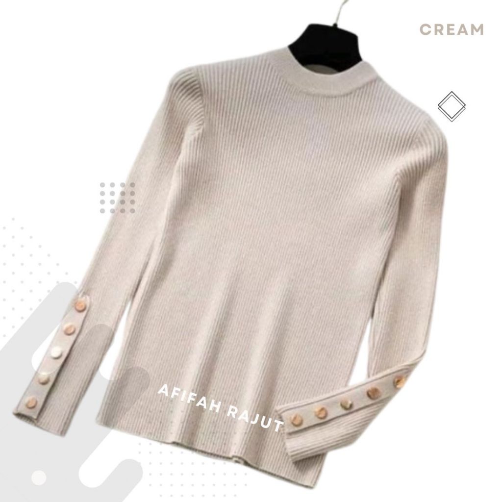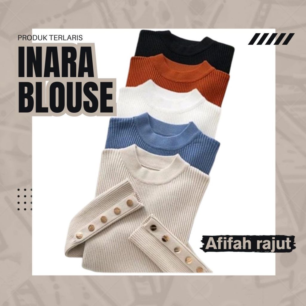 Inara Blouse KOREA/manset lengan kancing/atasan rajut wanita/Primula blouse korean style/inner rajut lengan panjang/inne