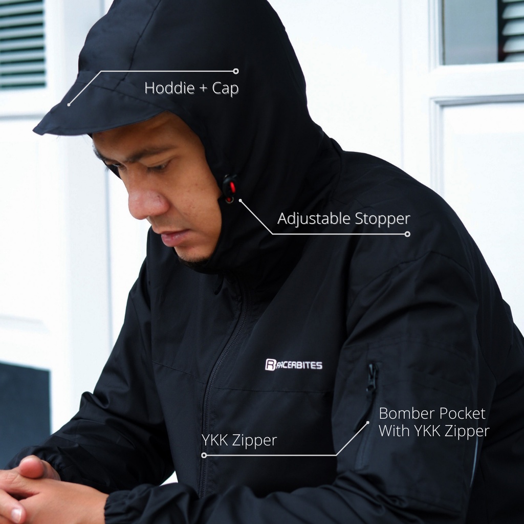 Jaket Motor Pria Racerbites | Jaket Windbreaker Warna Hitam | Jaket Anti Angin dan Hujan Ringan