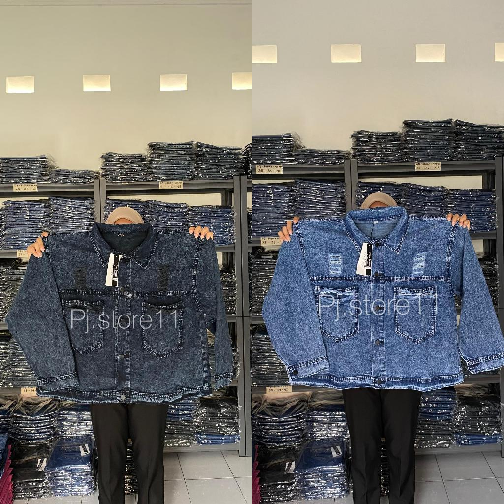 Jaket Jeans Ripped Jumbo Bigsize PRIA WANITA/Jaket Jeans Snow Oversize Unisex [ld120,130,140]