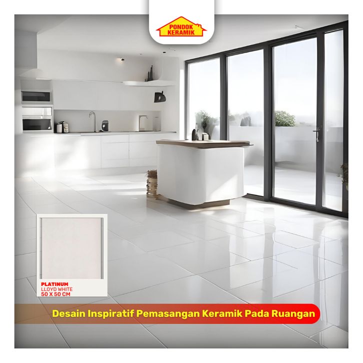 Keramik Lantai Rectified Platinum 50x50 Putih Polos Glossy Cutting