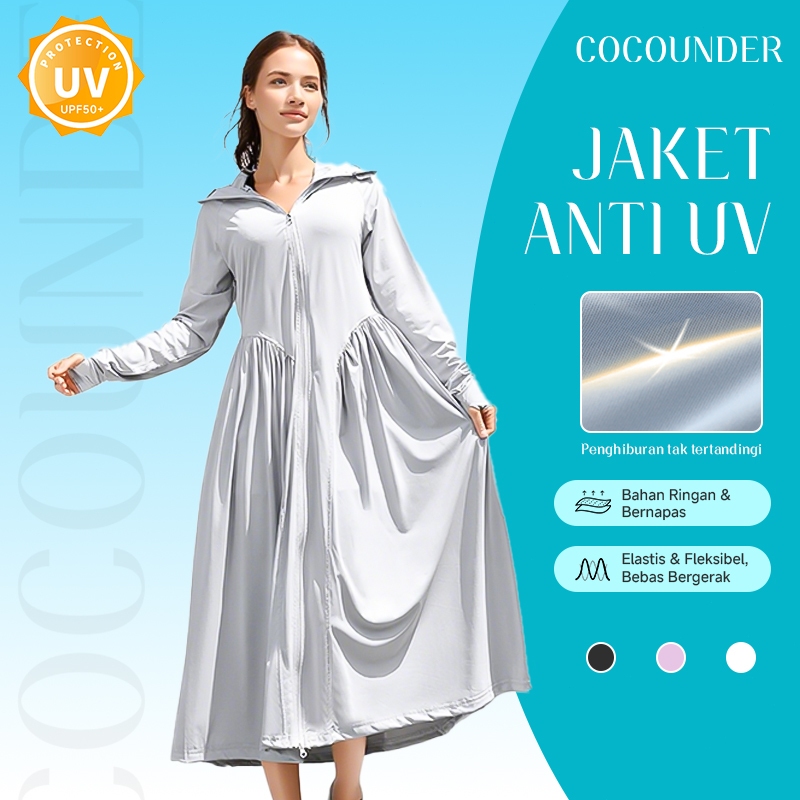 Jaket UPF50+ Olahraga Anti UV Wanita Gaun Panjang Baju Bernapas Outdoor Gym Jaket