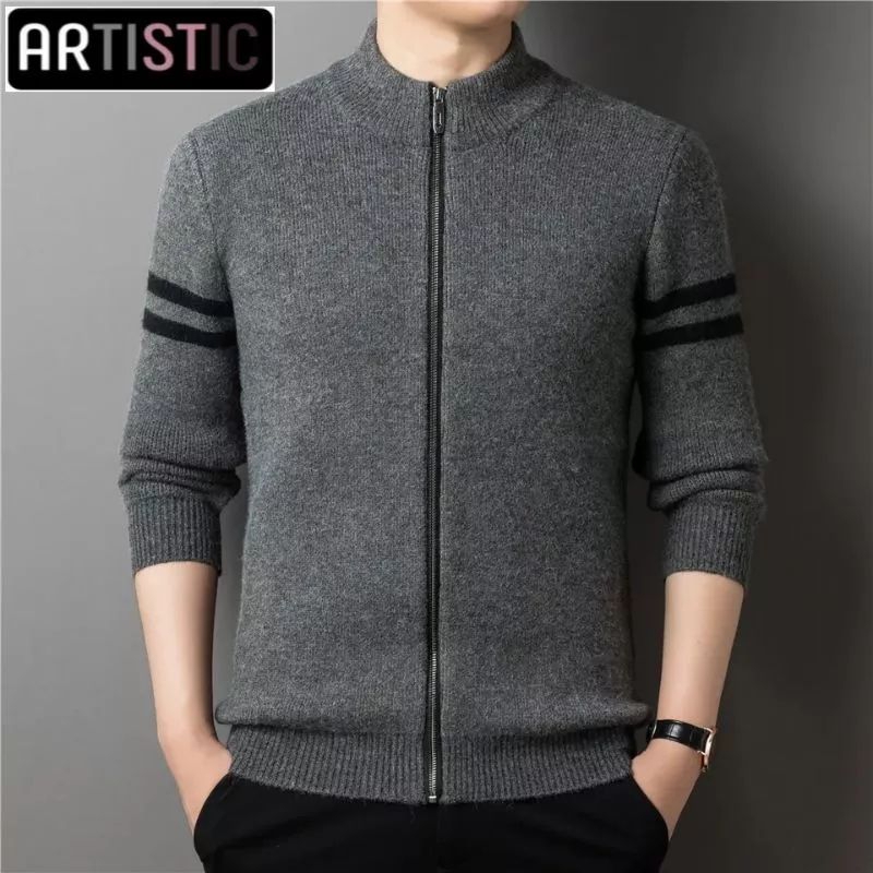 Sweater Pria Jaket Zipper Cotton Rajut Halus Kualitas Premium