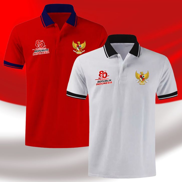 Kaos polo pria HUT RI 80 / Kaos Kemerdekaan RI 80th / Kaos 17 agustus 2025 / kaos pria merah putih