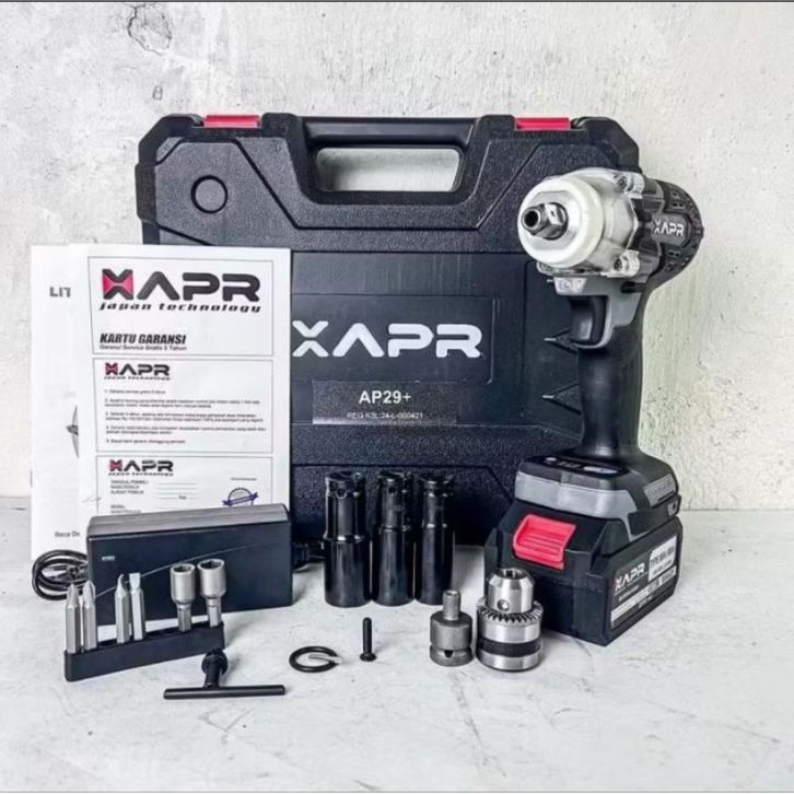 Mesin Pembuka Baut Roda Impact Wrench APR JAPAN TECHNOLOGY 550NM AP29+ Bonus Kepala Bor Fulset Promo DISKON