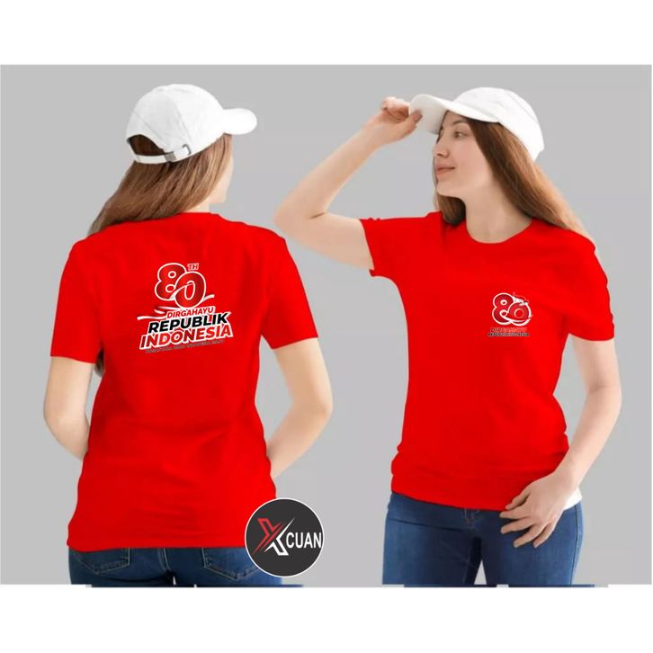 Kaos 17 AGUSTUS 1945 KE 80 T shirt Baju pria/wanita Couple family perempuan dan laki laki DPN/BLK