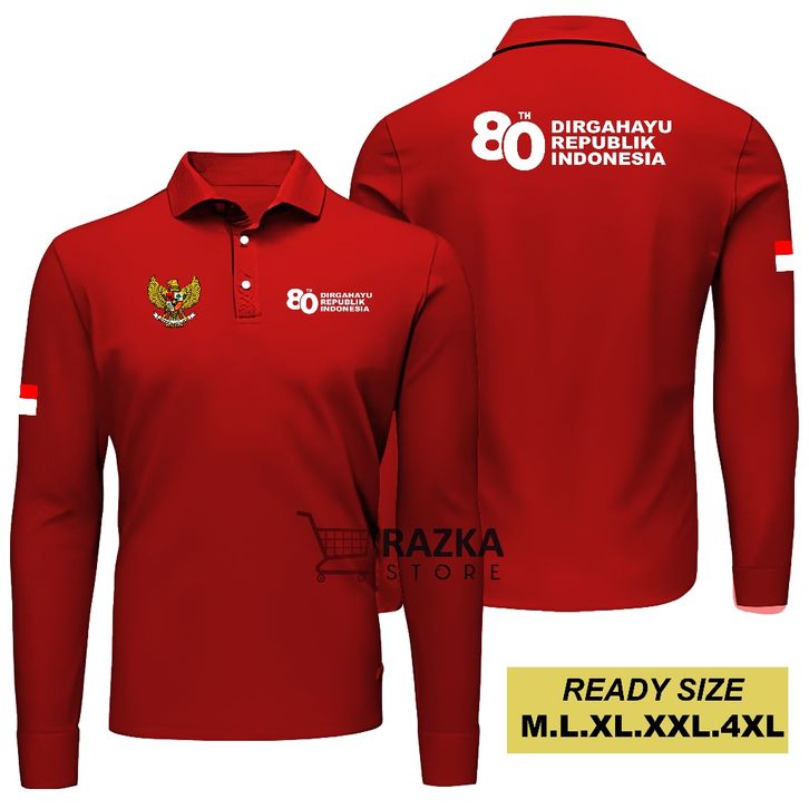 Kaos Kerah Hut Ri Ke 80 Tahun Kemerdekaan Indonesia Lengan Panjang 2025 Terbaru