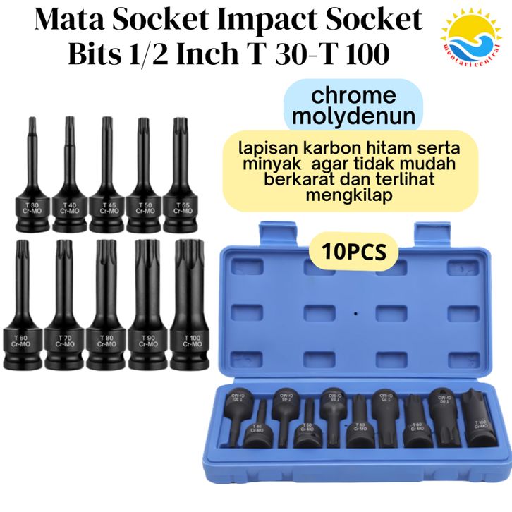 Mata Socket Impact Socket Bits 1/2 Inch Driver Metric Torx Hex Socket T30-T100 DISKON