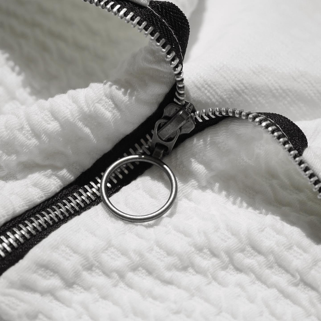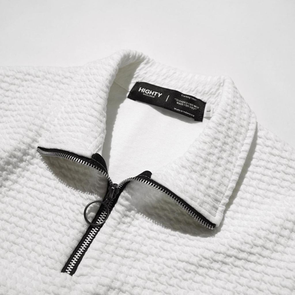 HIGHTY White Waffle Half Zip Sweatshirt | Jaket Switer Kerah Tinggi