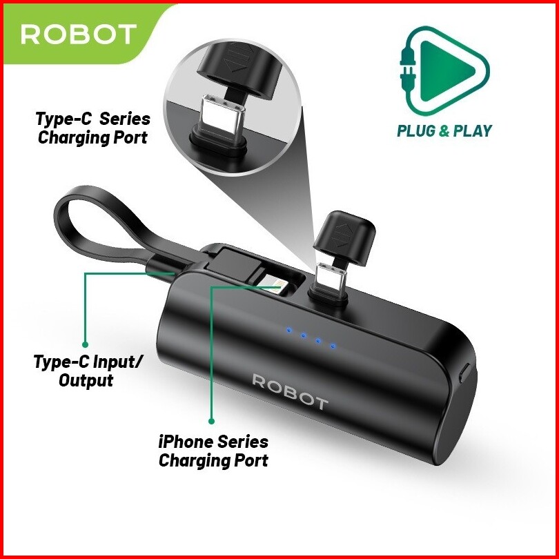 Powerbank Robot 10000mah Rt180 Dual Input Port Typec Micro Usb
