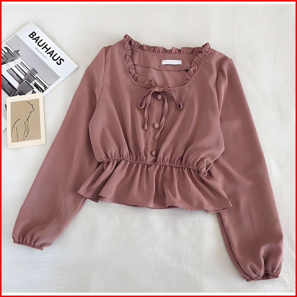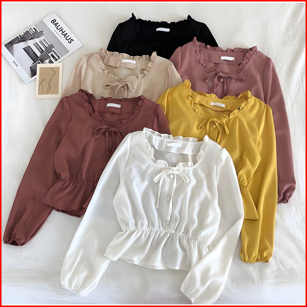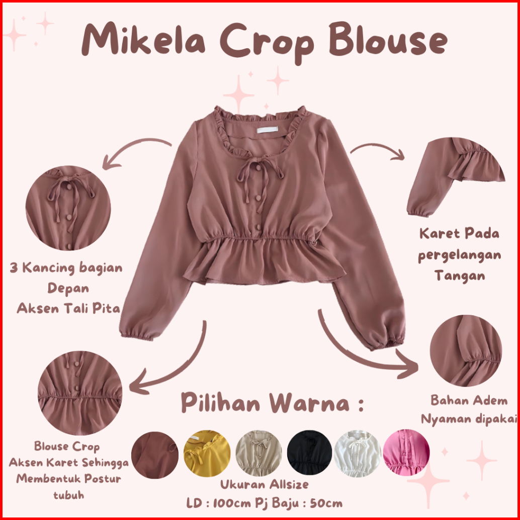 Freeya - Mikela Crope Blouse Baju Atasan Lebaran Wanita Terbaru 2025 Atasan Korean Style Blouse Crop Kekinian