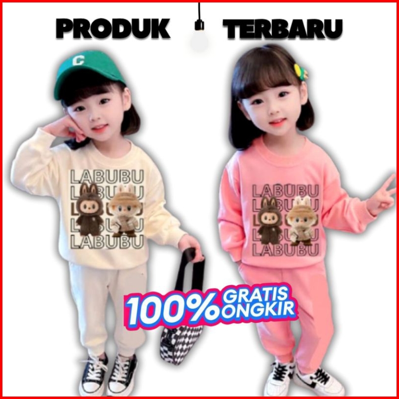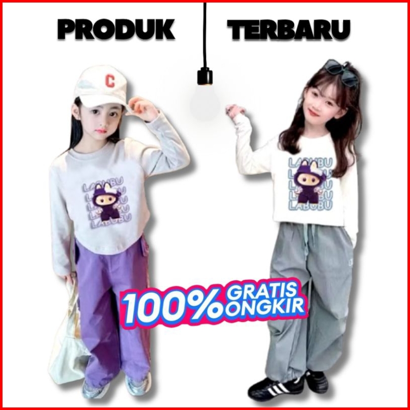 Setelan Baju Anak Perempuan Usia 1 12 Tahun Celana Cargo Labubu Viral
