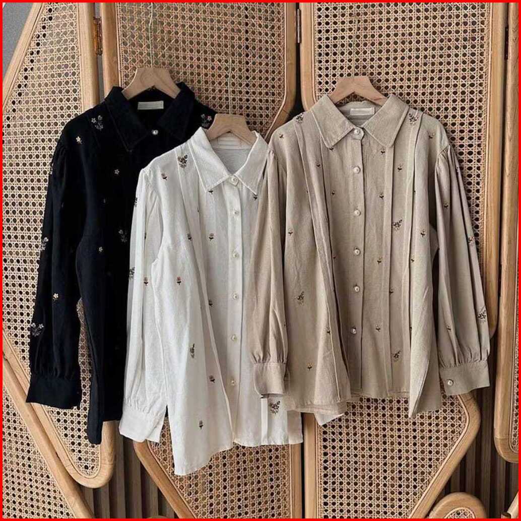 Kemeja Wanita Bordir Flower Kemeja Wanita Oversize Kemeja Wanita Lengan Panjang Atasan Wanita Remaja Kekinian Terbaru Ou