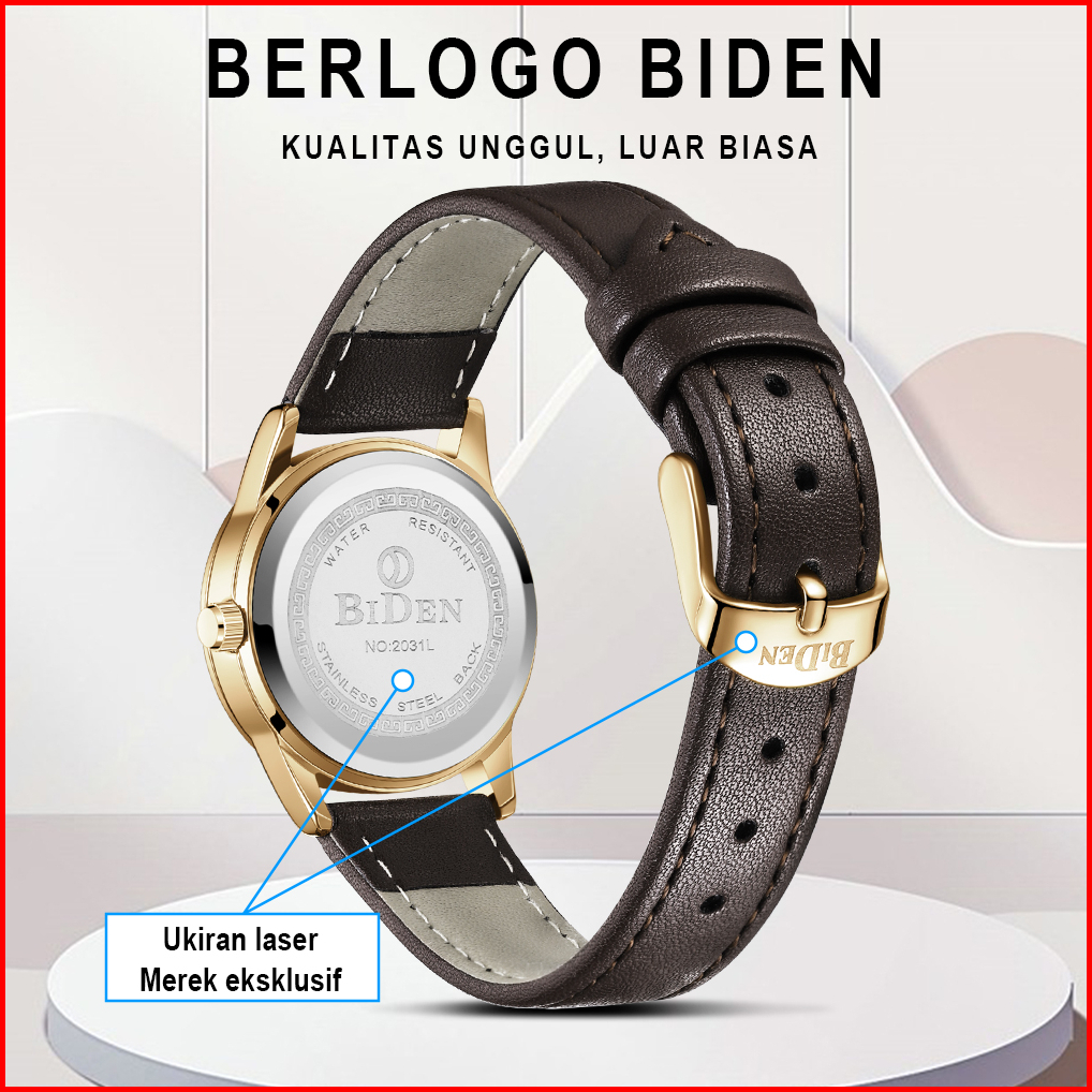 Biden Jam Tangan Wanita Original Anti Air Kalender Tali Kulit Korea Kasual Jam Tangan Cewek
