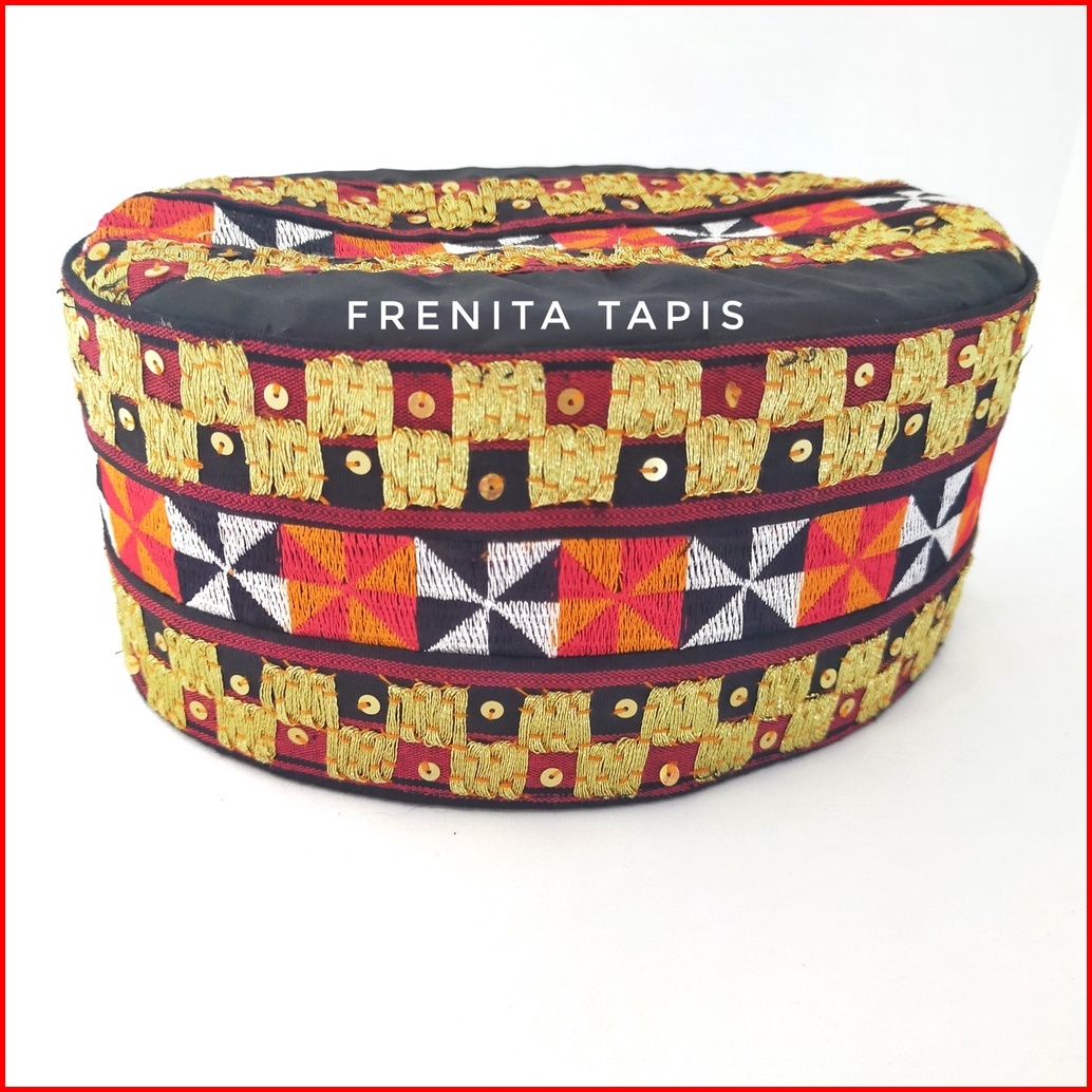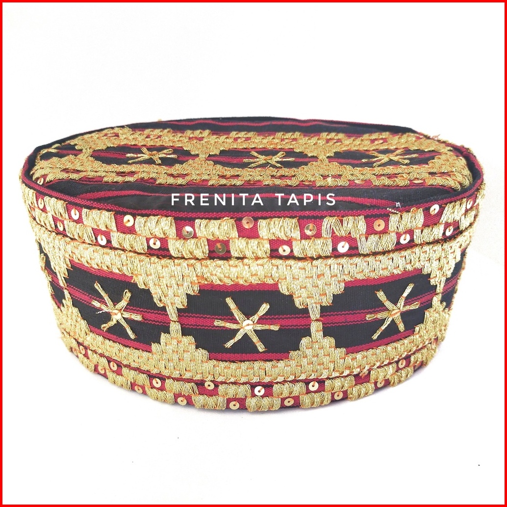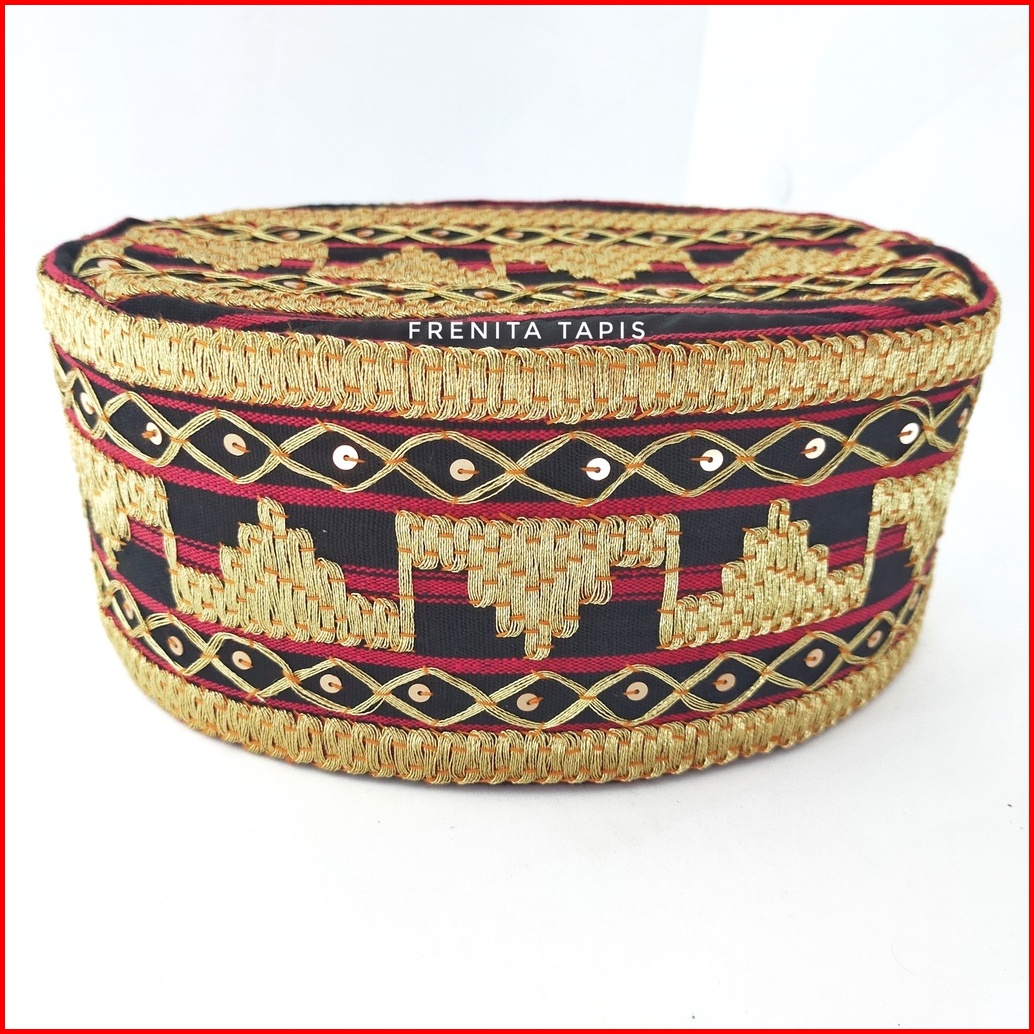 Cek Dulu Peci Tapis Asli Lampung Kain Tenun Kopiah Tapis Sulaman Bahan Salur Hitam
