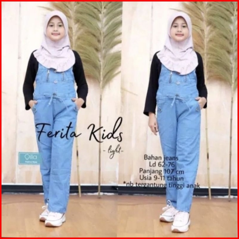Overall Anak Perempuan Usia 2-13 Tahun Jumpsuit Celana Kodok Jeans Anak Perempuan
