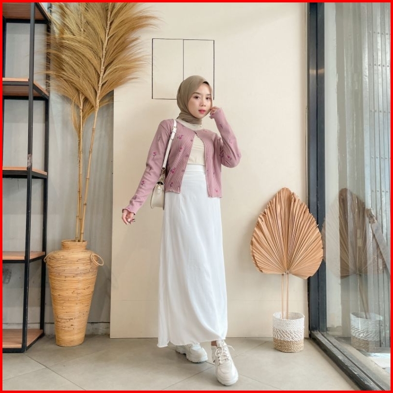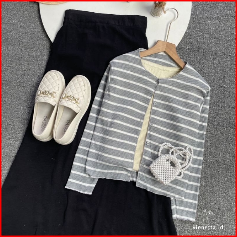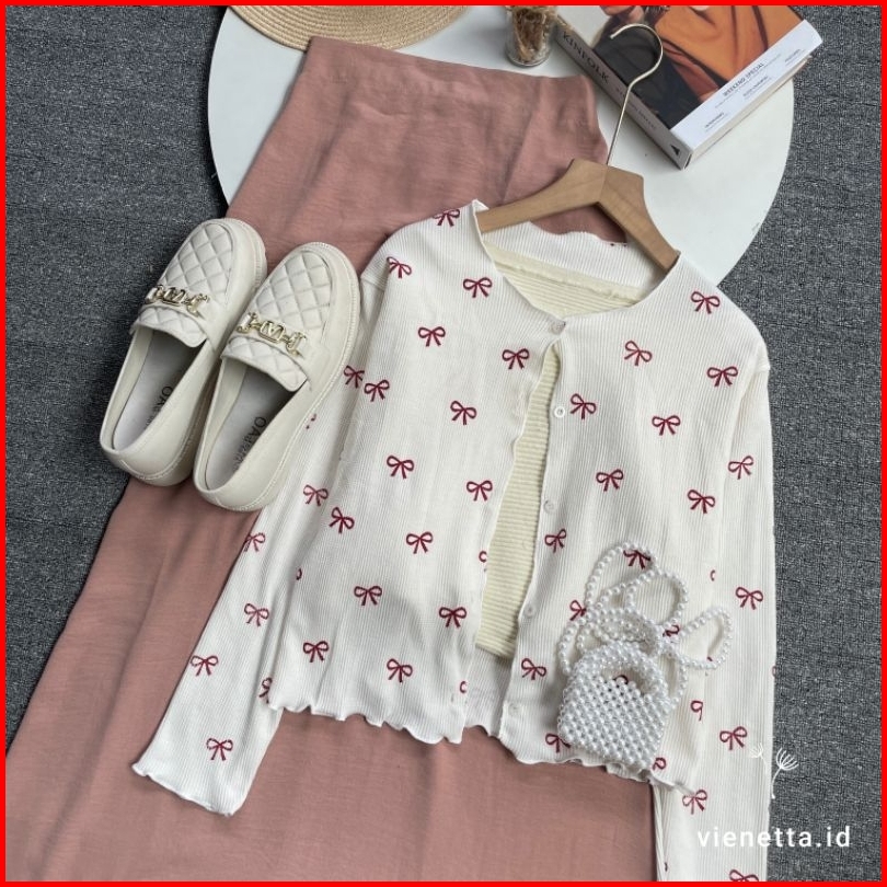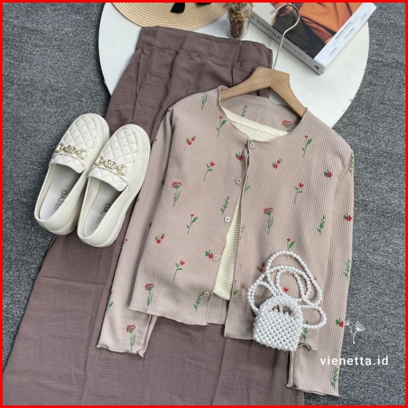 Vienetta.id - One Set Korean Style Setelan Wanita Cewek Remaja Baju Atasan Cardi Bunga Lucu Rok Polos Buat Healing Pikni