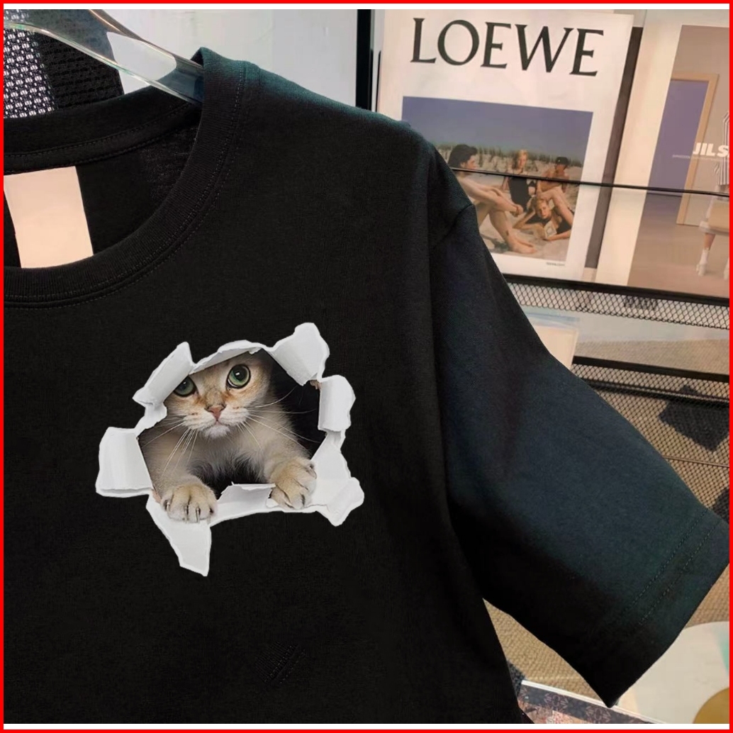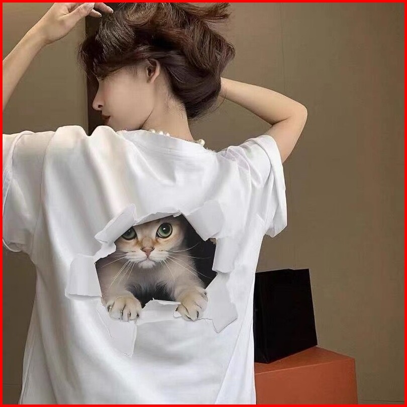 T Shirt White Cat Kaos Oversize Wanita Baju Wanita Korea Baju Atasan Wanita Terbaru 100 Cotton