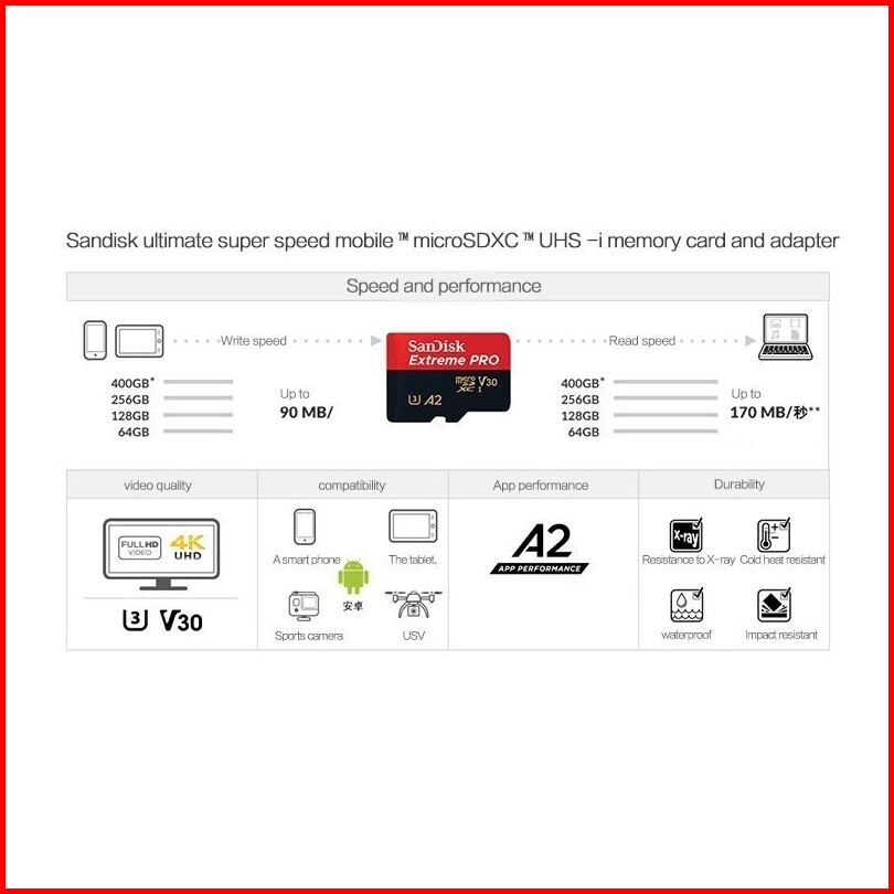 Micro Sd 32 64 128 256gb A2 Kelas 10 Kartu Uhs-i U3 170mb S Memory Card Hp Ori Kartu Memori Tf Mikro