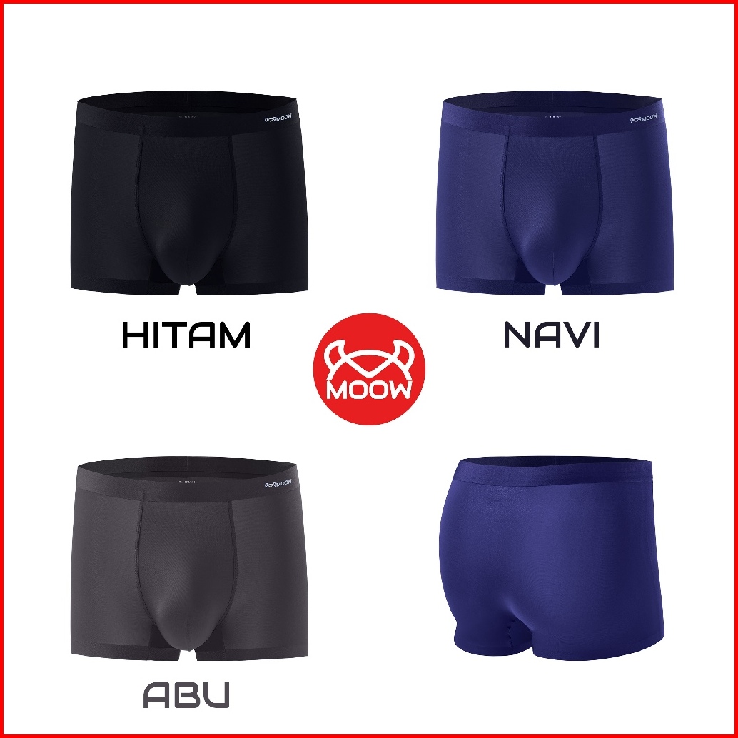 Moow Paket 3 Pcs Celana Dalam Pria Boxer Icesilk Seamless Premium Adem Lembut Antibakteri 5a Mp52