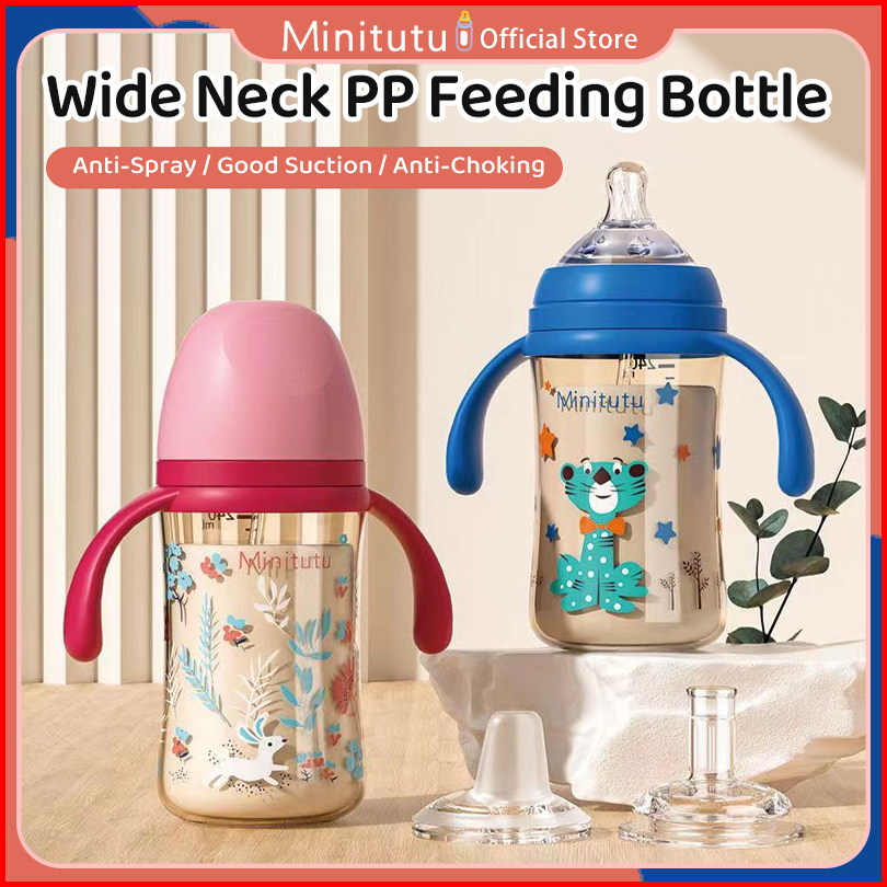Minitutu Botol Susu Anak Bayi Gaya Merpati 240ml 300ml Dengan Bola Gravitasi 360 Dengan Sedotan Dan Sedotan Yang Cocok U