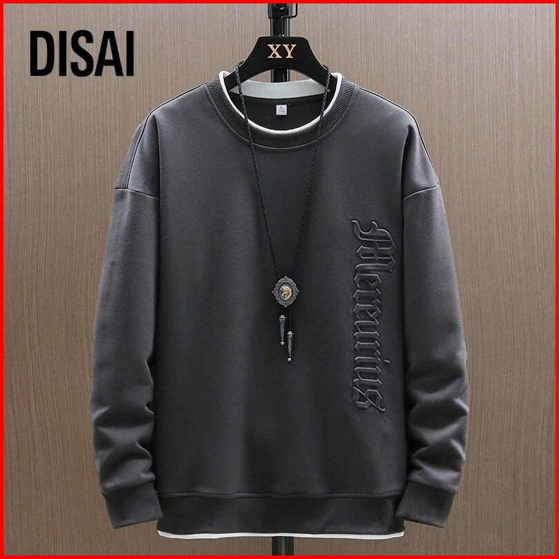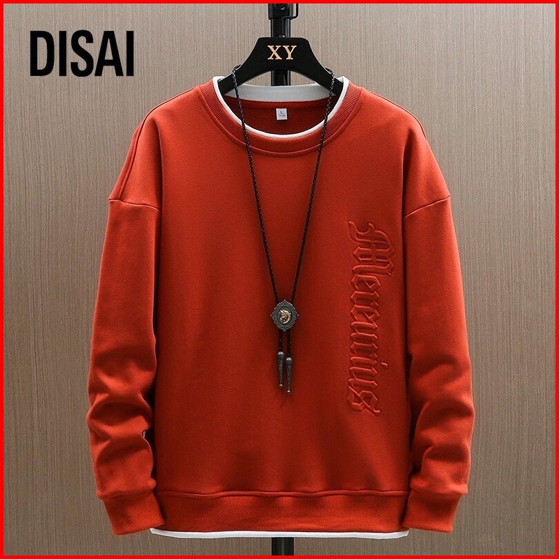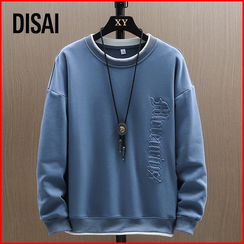 Disai - Sweater Polos Pria Lengan Panjang Distro Motif Print Basic Sweater Hoodie Sweatshirt W5513