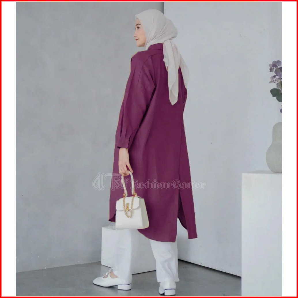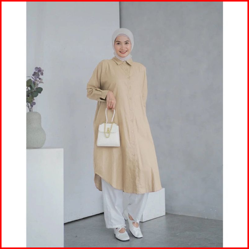 Dwyne Tunik Linen Baju Muslim Wanita Atasan Kemeja Wanita Linen Fashion Muslim Wanita Kekinian
