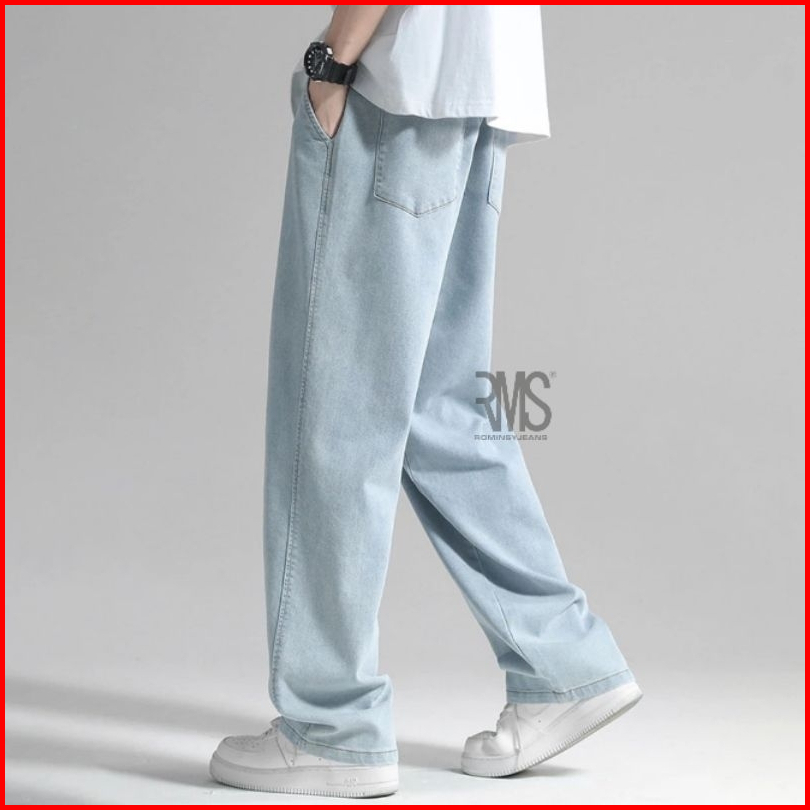 Celana Jeans Pria Celana Panjang Pria Pinggang Karet Korean Style Straight Jeans Santai Longgar Pria Oversize Celana Den