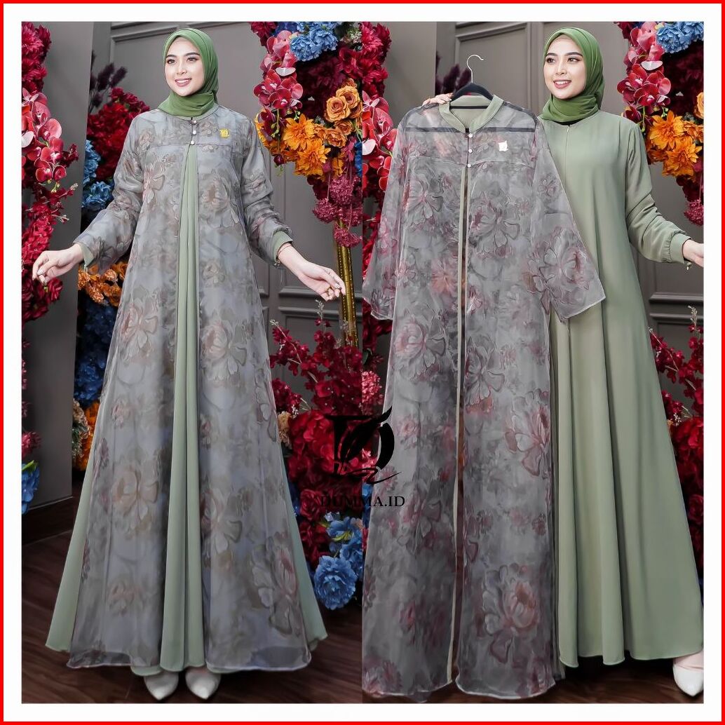 Gamis Terbaru Ellena Sasmira Set Outer Dress Wanita Muslimah Premium 2025 By Dumma