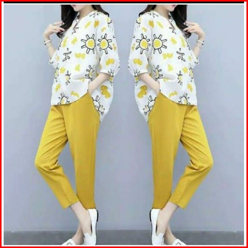 Setelan Baju Celana 7 8 Wanita Sunny Size M L Xl Baju Setelan Wanita Dewasa