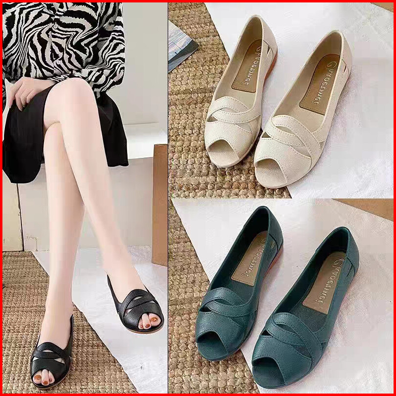 Plk Moonsua Tg1726 Sepatu Flat Shoes Wanita Premium Motif Silang 2 Terbaru