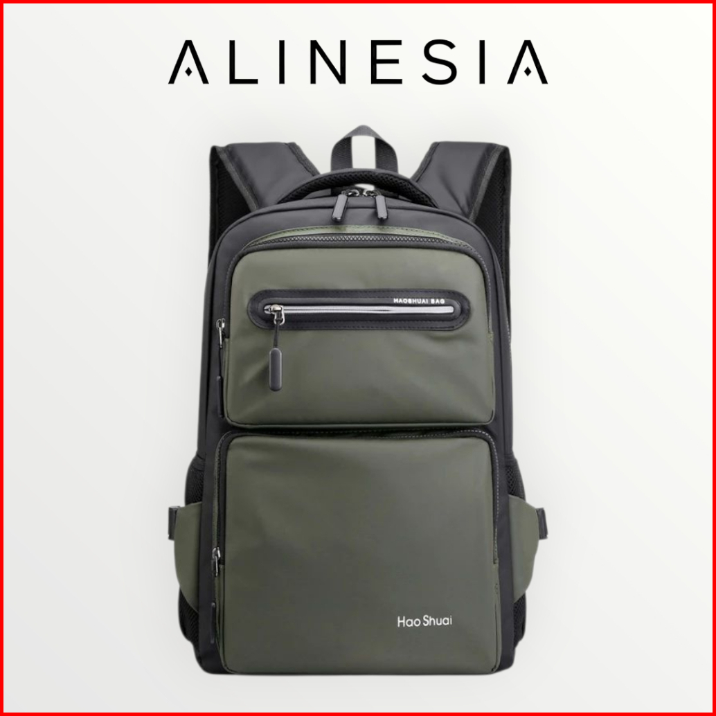 Alinesia - Tas Ransel Pria Wanita Waterproof Tas Laptop Punggung Anti Air Backpack Daily Tas Kuliah Black Abu Hijau
