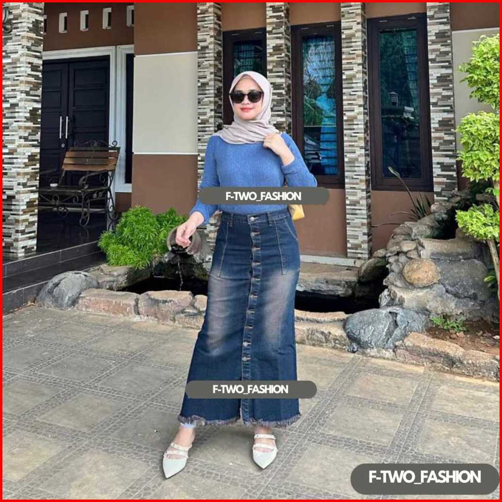 Rok Jeans Streech Span Panjang Gisca Kancing Depan Tebal Melar