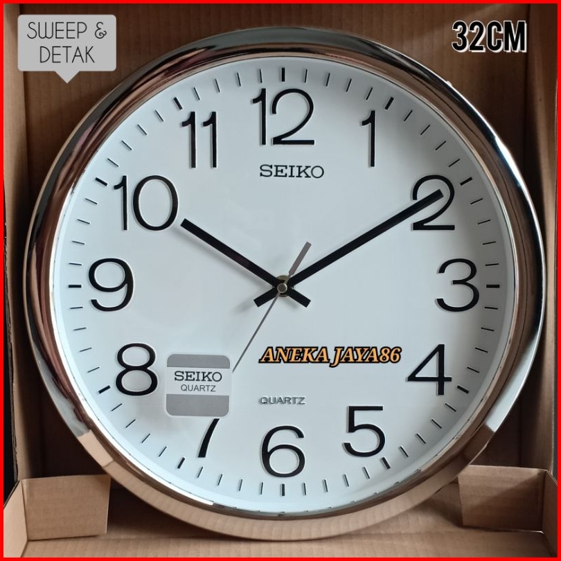 Jam Dinding Seiko 3227 Stainless Chrome Ukuran 32 Cm Sweep Detak